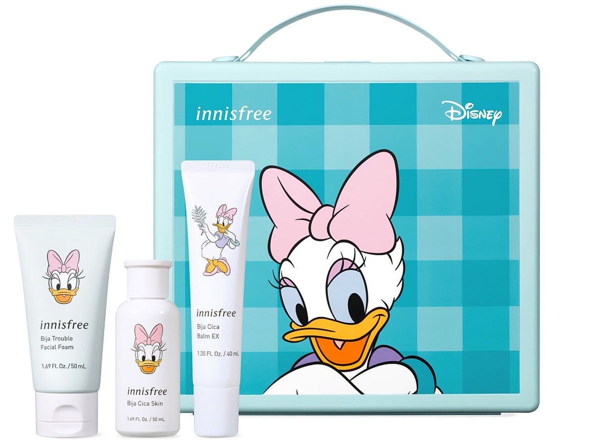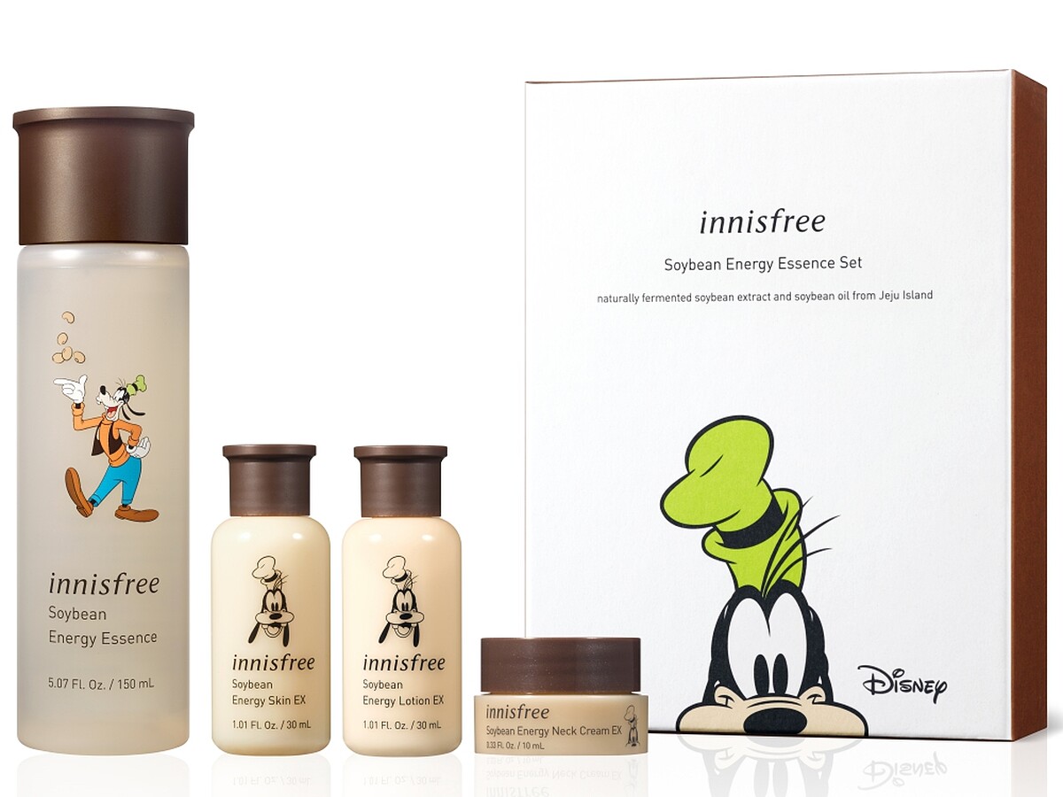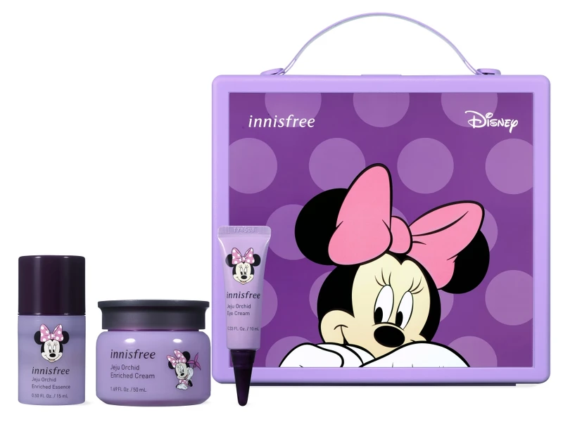 innisfree明星熱賣商品換上限定包裝,並以禮盒呈現,像米妮的是濟州寒蘭系列、黛西是香榧調理系列、高飛是發酵豆精華…,整組收到絕對會開心!
