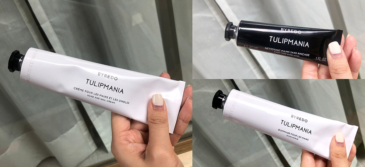 瑞典香氛品牌BYREDO在推出鬱金香淡香精LA TULIPE幾乎10年後,醞釀出這款花香調清新香氣,推出一系列手部保養商品。