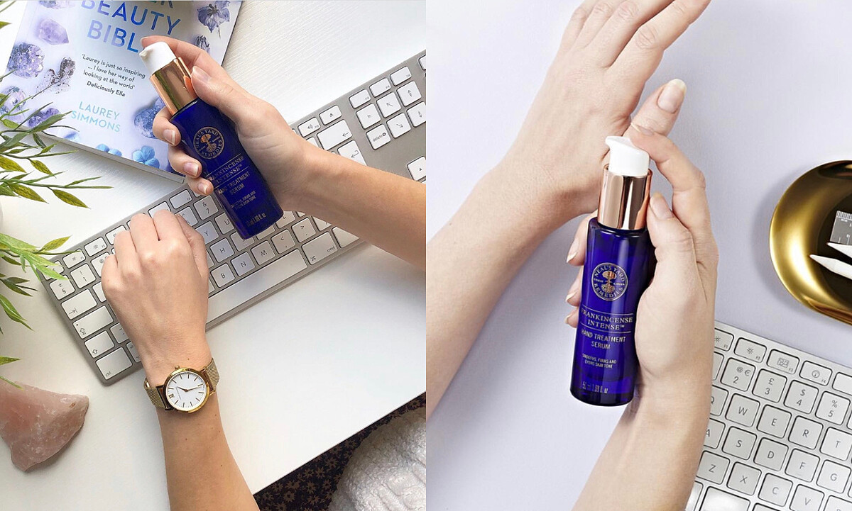 針對重視手部保養問題所設計,尼爾氏香芬庭園 Neal’s Yard Remedies推出第一瓶有機認證高效手部精華,採用NYR所見長的以高品質阿曼乳香精油,幫助提升肌膚緊緻度、改善皺紋及細紋,並放鬆肌肉緊繃。帶有香甜氣味與木質香氣的頂級阿曼乳香,在保養過程同時以吸嗅的方式感受乳香的力量,放鬆疲憊情緒。