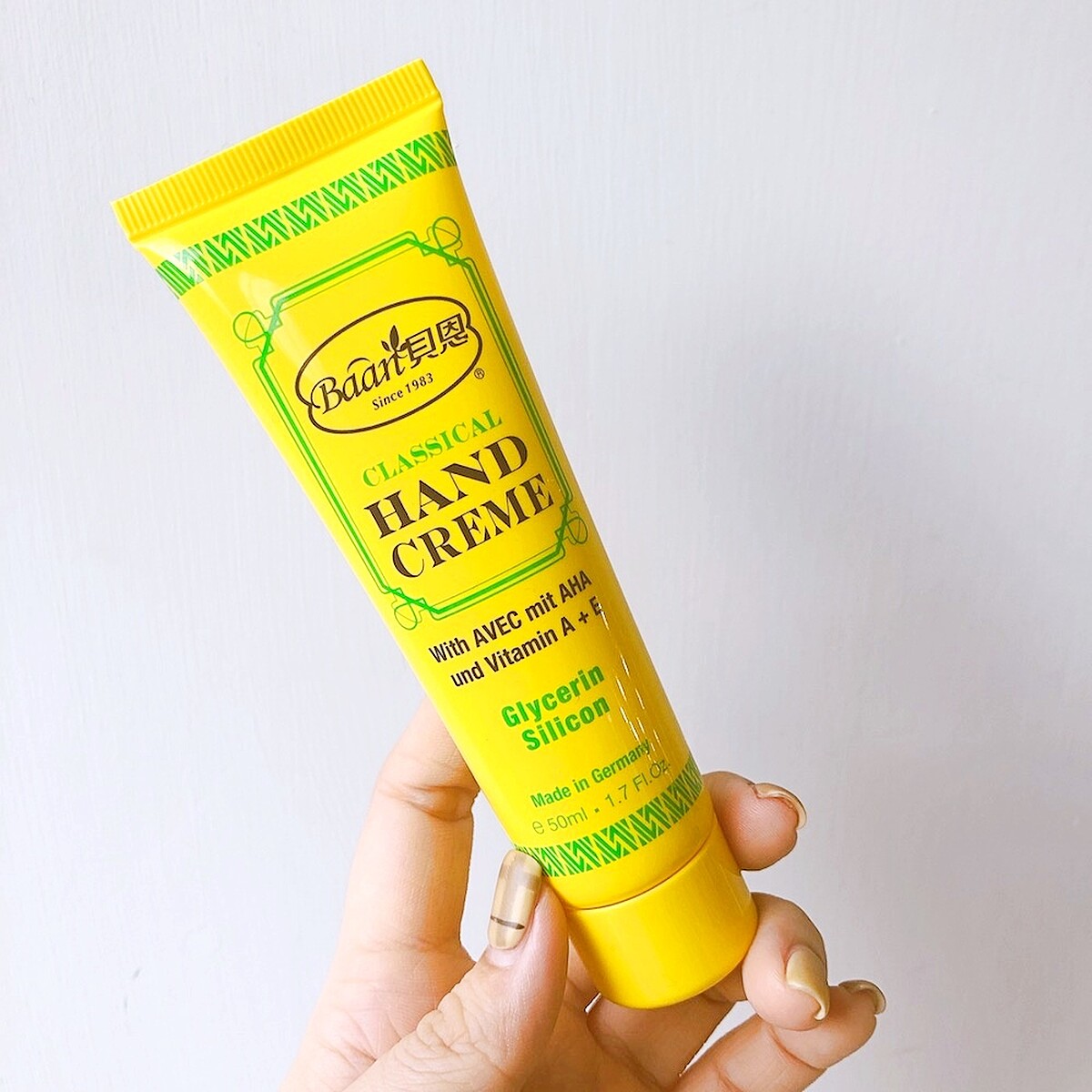 面對每天直接觸碰外在環境的雙手,提升保濕度是首要工作,德國品牌貝恩BAAN針對手部保濕,推出的經典護手霜使用維他命A&E、甘油、金縷梅、尿囊素,洗完手後取適量輕輕按摩於手心、手背、手臂、手肘即可能迅速補充手部滋潤感,讓做完工事、家事的雙手能獲得緩解與滋潤,使用氣味上帶有清新的花草香氣。