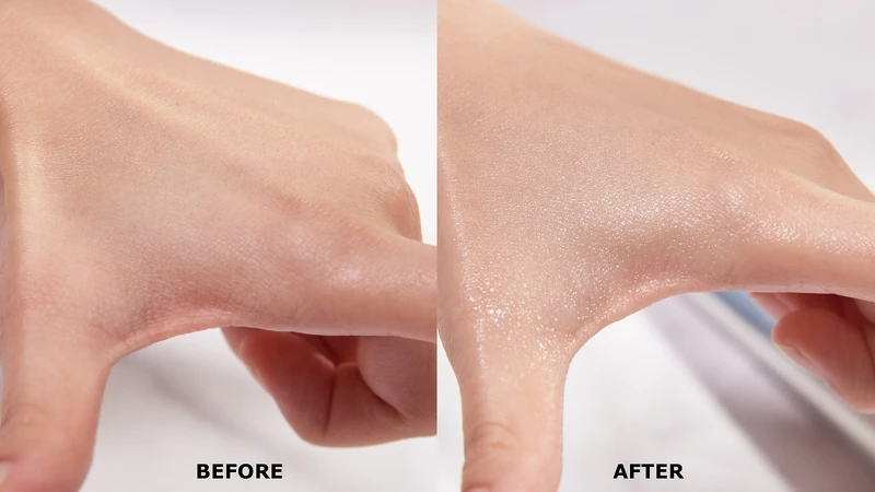 塗抹後,整體膚感變得滑嫩又保水,連討人厭的紋路也變得不明顯,膚質好細緻。