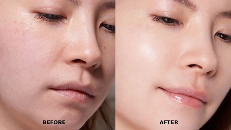 妝前使用:上底妝前薄塗一層於毛孔粗大的位置,毛孔瞬間霧化神隱,修飾力超強,還能讓後續底妝更服貼自然且無瑕,持妝力也大幅提升。