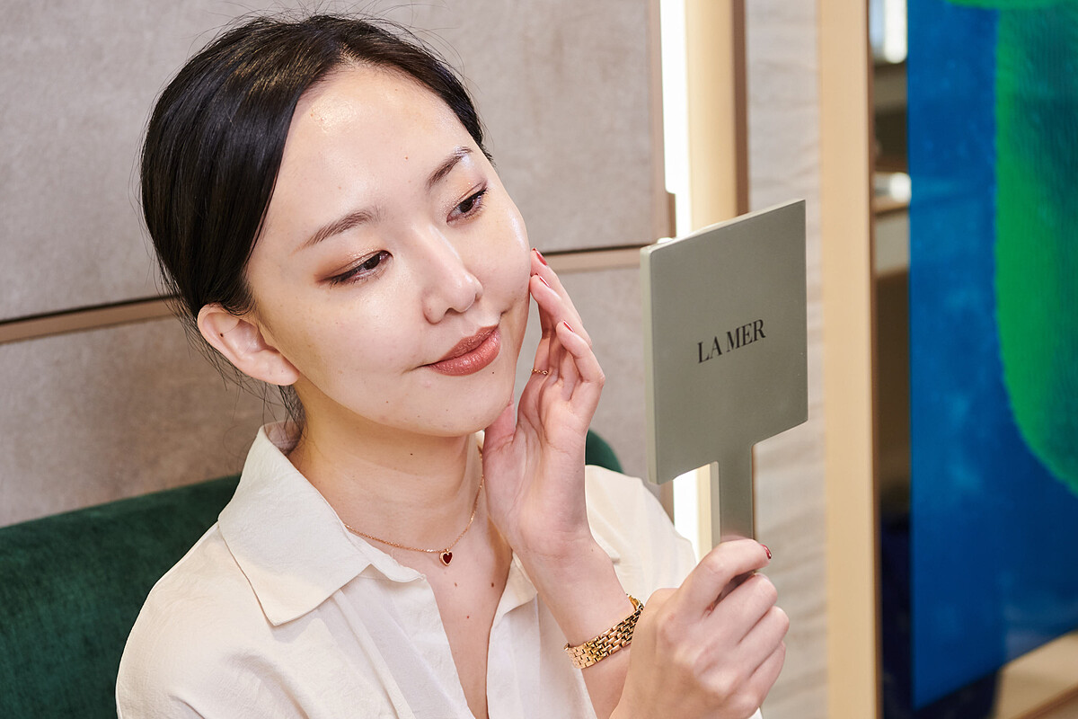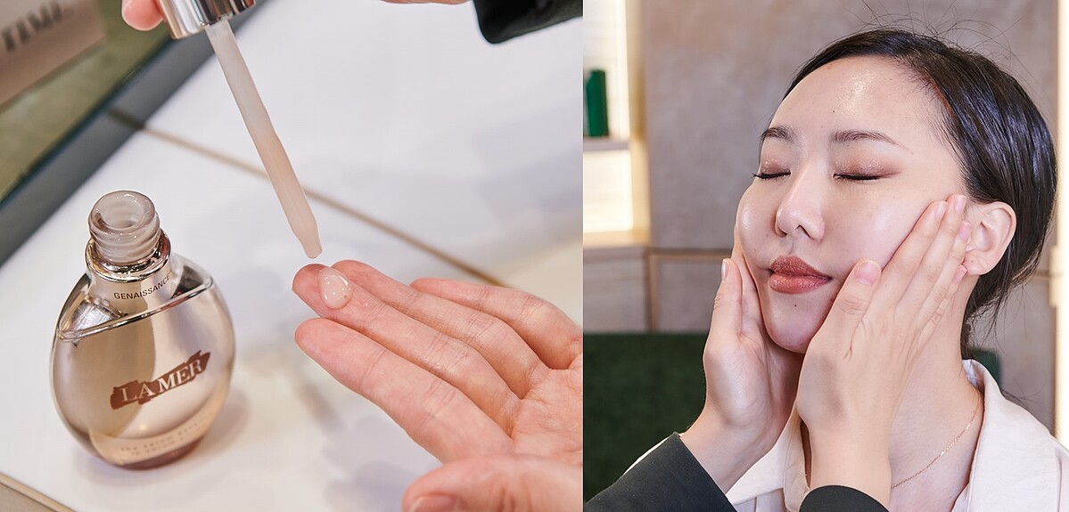 最後還會依照膚質需求,用經典乳霜或舒芙乳霜為肌膚封存所有養分,雖是精巧的櫃邊服務,但所用產品超完整,儼然是20分鐘版頂級SPA!」完成超奢華LA MER迷你版櫃上護膚體驗,感覺肌膚立即進入前所未有年輕狀態的Catie,建議日常非常忙碌或很懶得塗抹瓶瓶罐罐的人,務必要試試「液態乳霜+經典乳霜」,這個海洋拉娜櫃姐和品牌VIP才知道的私房用法。