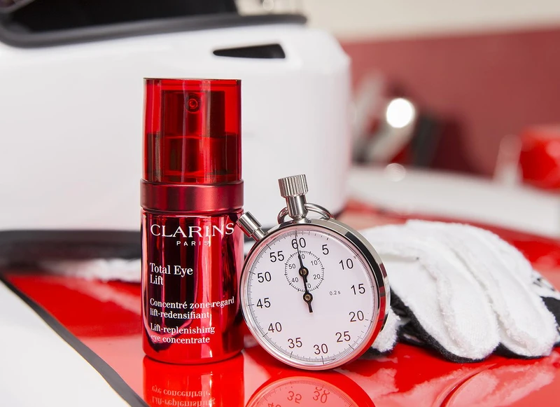克蘭詩全新推出的全效緊緻眼霜,暱稱為賽車眼霜,高達94%天然植物配方。主要利用金合歡與有機哈倫加那葉兩種核心植萃配方,為眼周肌膚打造「雙重撫紋拉緊網」,幫助眼周輪廓更彈潤緊緻。另外還添加七葉素幫助減少眼部暗沉,避免色素聚積所產生的黑眼圈。有機瓜拿納與咖啡因則分別可以舒緩眼袋與浮腫的問題。