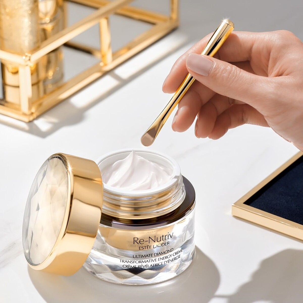 像是她最喜歡的雅詩蘭黛「白金級黑鑽松露霜」(黑鑽松露霜),唯有使用者才能親身體會,接觸肌膚時水潤絲綢質地在臉上形成一道逆齡光環的神奇能量,就是深深吸引劉嘉玲與無數貴婦名媛,一用過就從此無法「戒除」的極致美好啊~