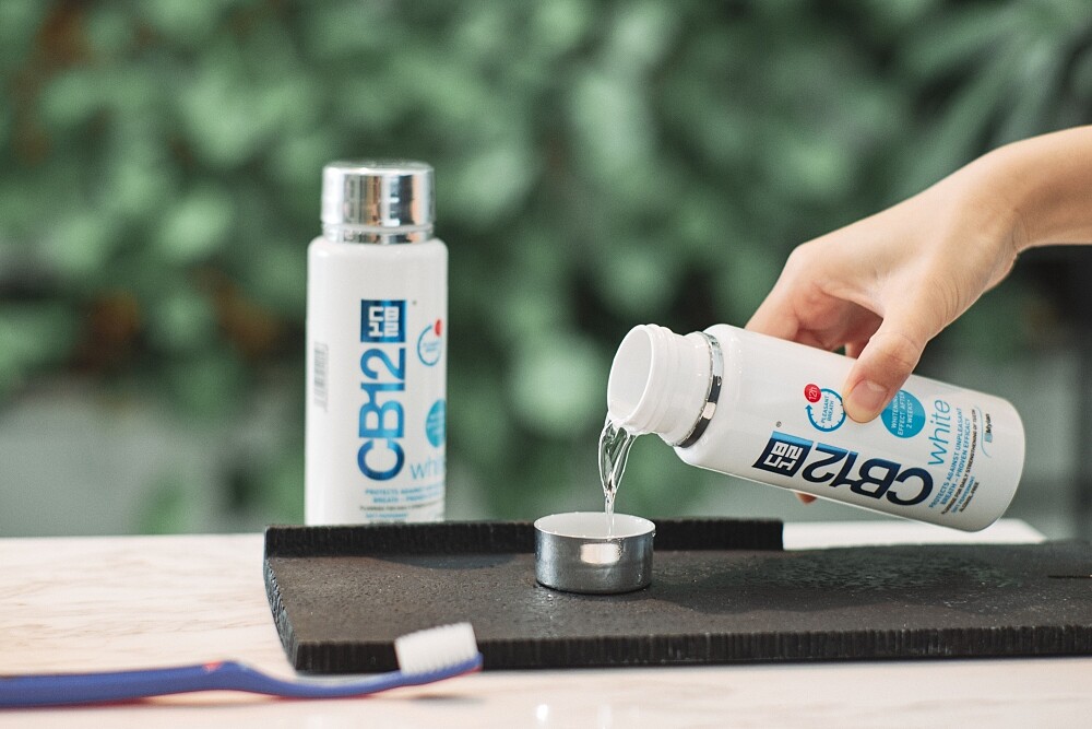 由奧斯陸大學牙科學系教授研發、義大利藥廠生產,主打長效維持清新口氣。成份不含酒精,而以專利配方(CHX氯己定搭配鋅離子Zn2+)幫助抑菌並分解口中異味。據說睡前使用CB12漱口水,隔天醒來,口氣還是很清新,是最讓人喜愛的地方!2006年在歐洲上市以來就大受歡迎,平均4.7秒賣出一罐,有「歐洲藥妝斷貨王」的暱稱。