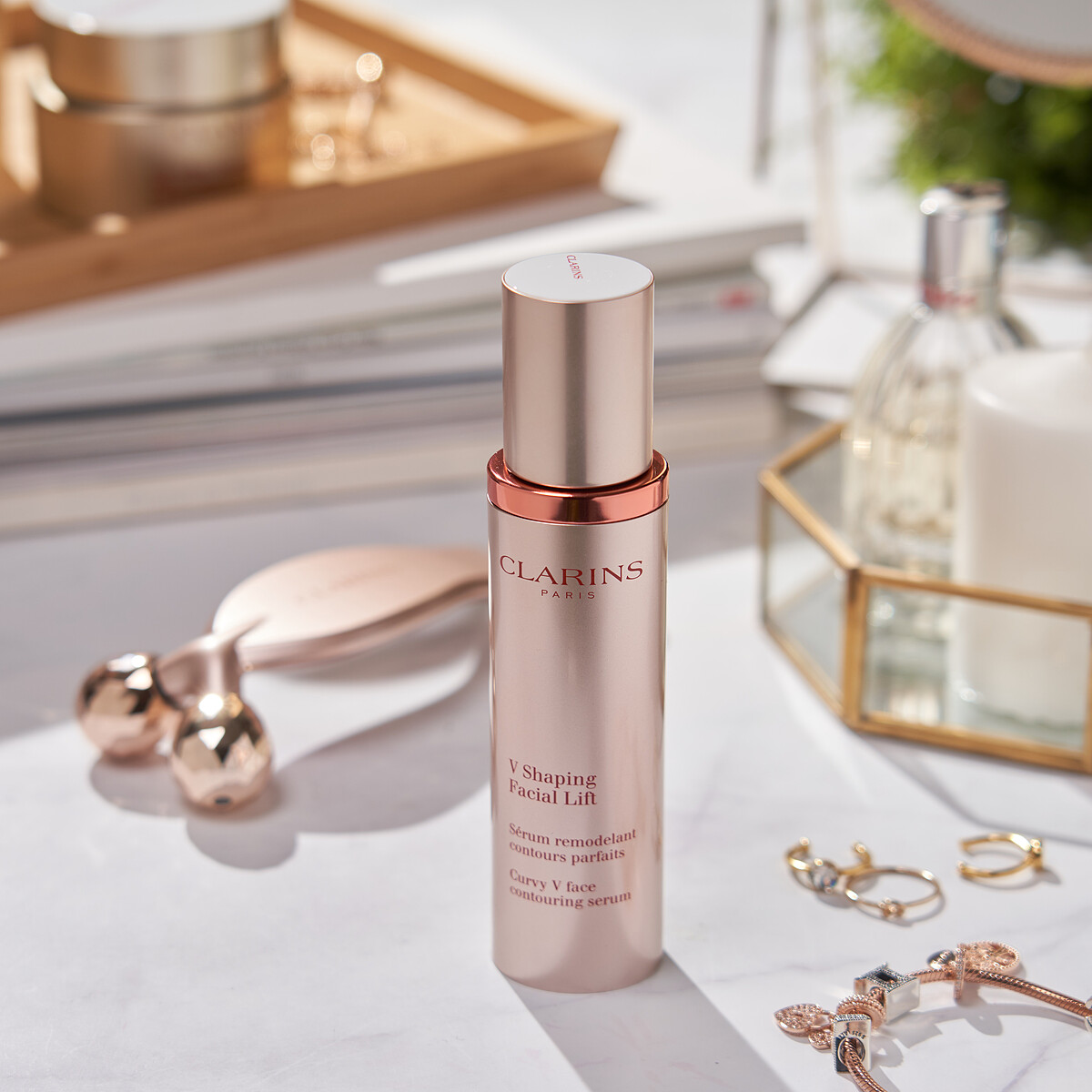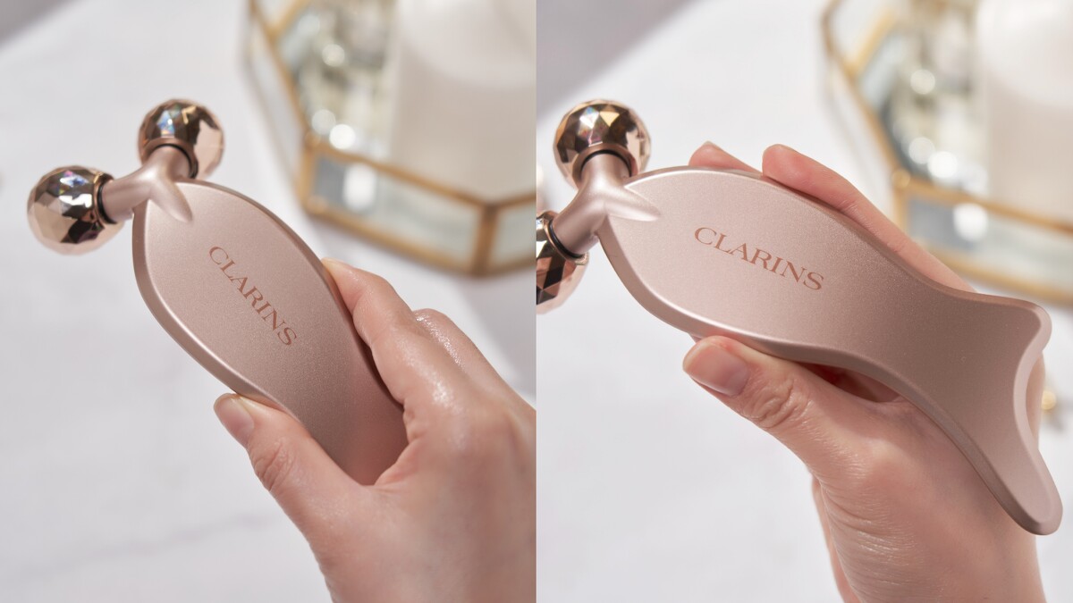 單用「V型抗引力逆轉精萃」就有很棒的拉提緊緻效果,如果想要更上一層樓,當然來試試克蘭詩《緊緻V護膚會》限定推出,只送不賣的「V型緊緻拉提工具」,融入傳統技藝「刮痧」所設計的多角度滾輪,分量和手感都一級棒。針對亞洲人輪廓特別設計的曲度,符合人體工學,能夠以最輕巧的力量達到最佳促進循環的效果,幫助新陳代謝&排除多餘水分,水腫麵包臉碰上這支只能靠邊站。