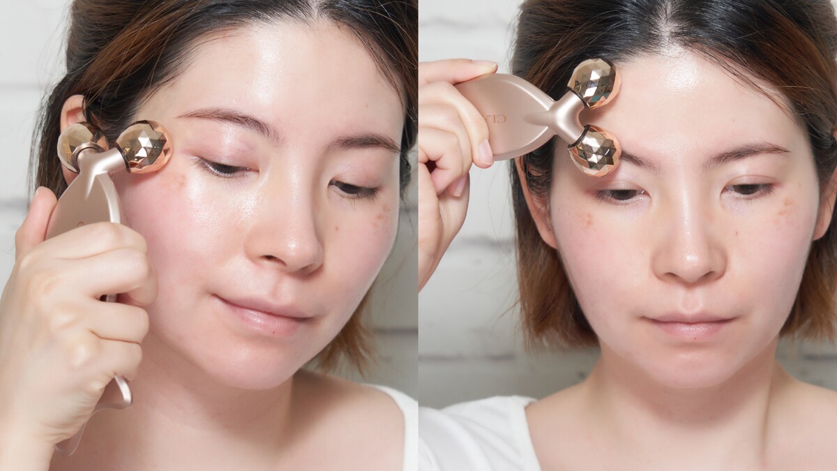 1.用滾輪沿著輪廓線輕滾至耳垂,並重複10-15次,再換邊做。