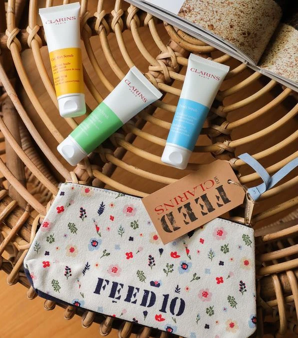 分享愛就趁現在!不論是克蘭詩鐵粉或新加入的姊妹~這次FEED限量組合M編真心大推!尤其是2款強棒「限量愛珍藏組」,A組是全新推出的去角質霜、B組是SOS面膜,不論是去角質霜或面膜,都有保濕藍(生命之葉)、淨化綠(阿爾卑斯柳草)、滋養黃(野芒果),三種依據膚質量身訂製的保養功效可任選其一,一支去角質(或面膜)就送一款時髦可愛的環保材質FEED化妝包(6-7月限定),等於買產品就送包還幫你捐餐!愛漂亮同時也為世界和社會盡一份心力,得到孩子們開心的笑容,就是最美好的回饋!