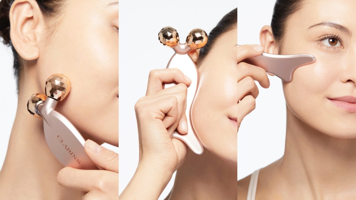 今年克蘭詩更貼心將護膚範圍由臉部擴充至肩頸,還引入針對亞洲人臉型骨骼構造設計的「按摩神器」V型緊緻拉提按摩工具,融入傳統刮痧所設計的多角度滾輪,能夠以最輕巧的力量達到最佳促進循環的效果。