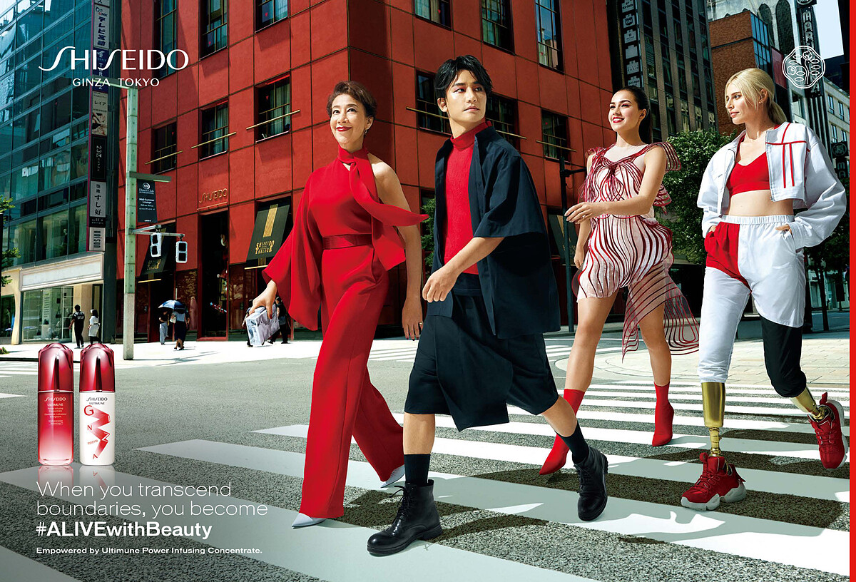 主視覺特別邀請資生堂大使:小紅瓶大使林俊傑、日本女演員前田美波里、國際名模Lauren Wasser、演員黃軒、花式滑冰金牌選手Alina Zagitova等人,分享他們跨越世界既定的審美框架,自信走過東京銀座市中心,勇敢秀出獨一無二的年輕模YOUNG。