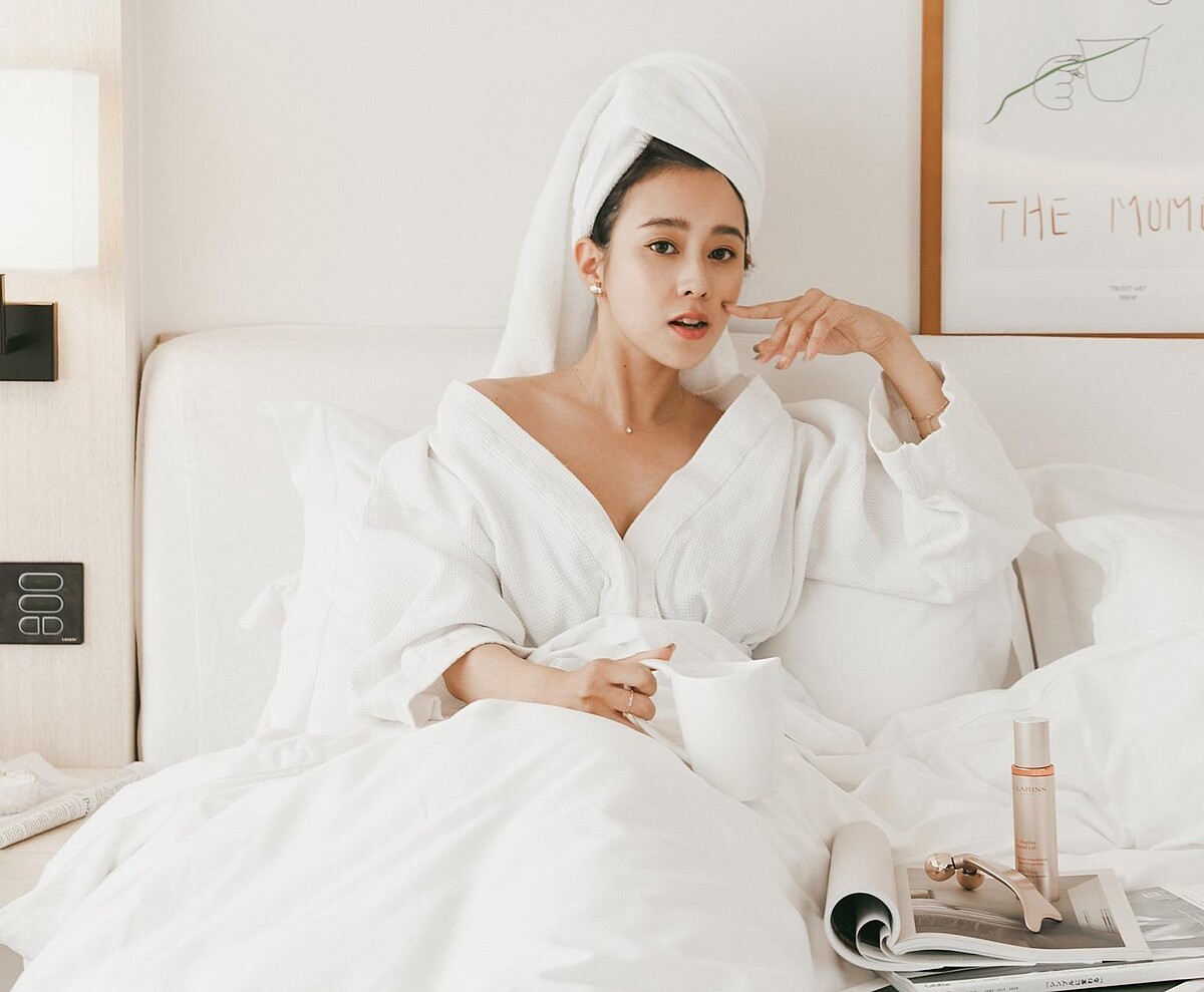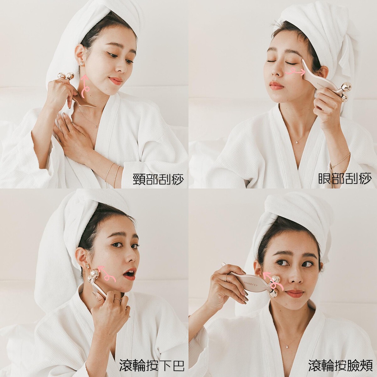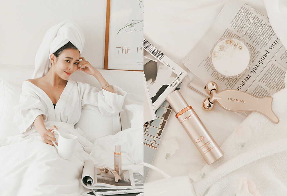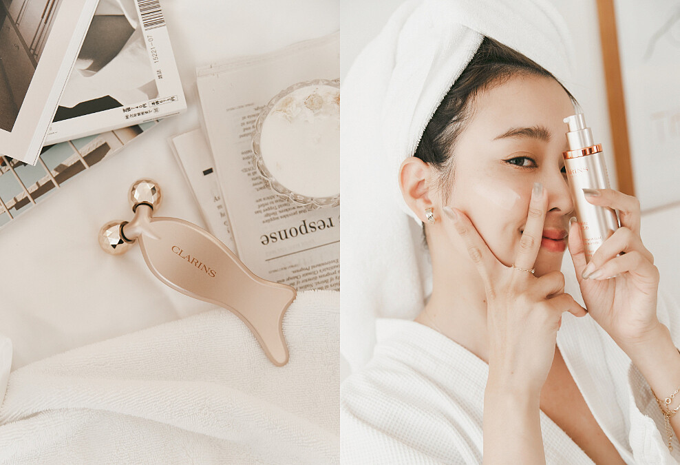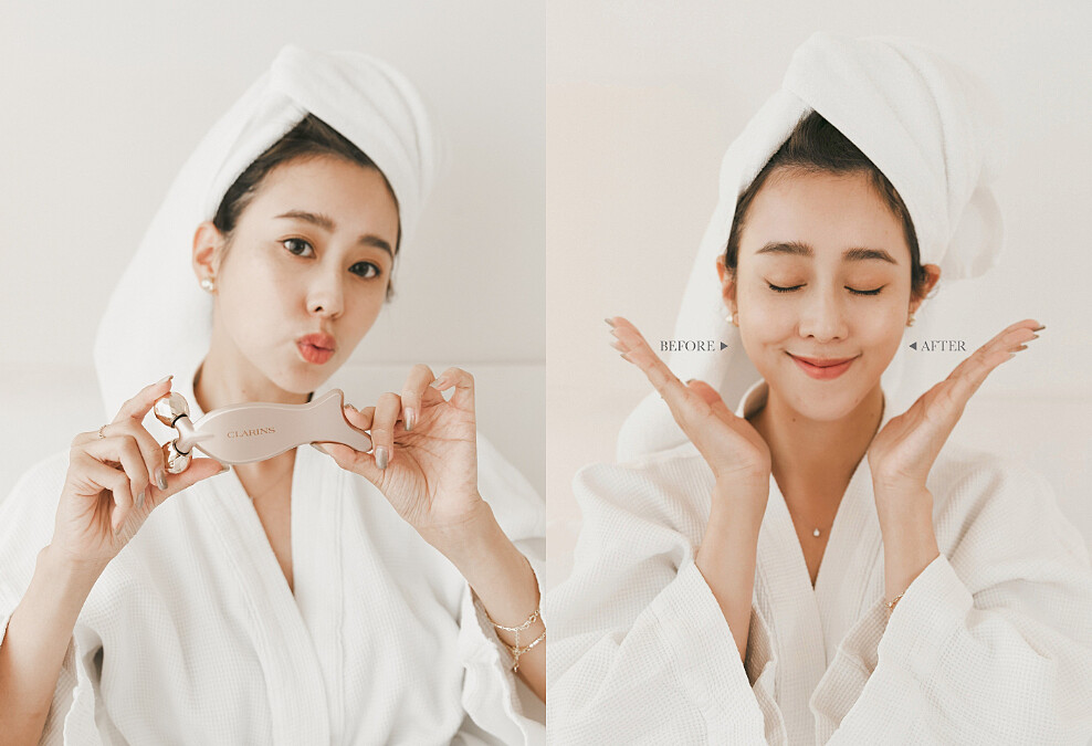 可別以為唐葳是天生小臉,其實她說自己是屬於容易水腫的體質,如果前一晚沒睡好隔天就會看起來腫腫的,雙頰緊緻感會有點不足,臉部輪廓也相對不明顯,因此除了注重飲食之外,她也會特別加強按摩!最近更愛上了「克蘭詩V型抗引力逆轉精萃」,搭配限定版的按摩神器,完全就是上鏡神組合,變漂亮不用再等到下午,起床10分鐘就可以恢復高水準。