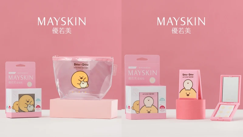 隱形痘痘貼品牌MAYSKIN優若美2020年夏天與韓國超人氣糯米糰Dow-Dow合作,推出期間限定的痘痘貼聯名組合,搭配透明化妝包、收納盒、髮帶等專屬周邊贈品,看起來超萌、超療癒!