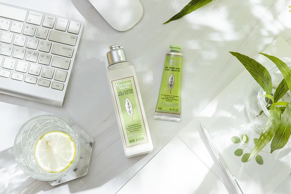 蘊含有機馬鞭草精萃、綠薄荷精華油及檸檬精華油的「薄荷馬鞭草身體乳」,陣陣涼感滲入肌膚的瞬間,燥熱情緒彷彿瞬間被澆熄,溫柔滋潤身體每一寸肌膚,是最佳調劑身心的夏日日常保養。整天待在辦公室裡敲鍵盤,雙手變得又乾又皺,此刻需要輕盈凝乳質地的「薄荷馬鞭草護手乳」為妳效力,給予乾燥雙手柔嫩滋養,舉手投足間盈滿馬鞭草檸檬香氣更是療癒身心,報告再打三千字沒問題!