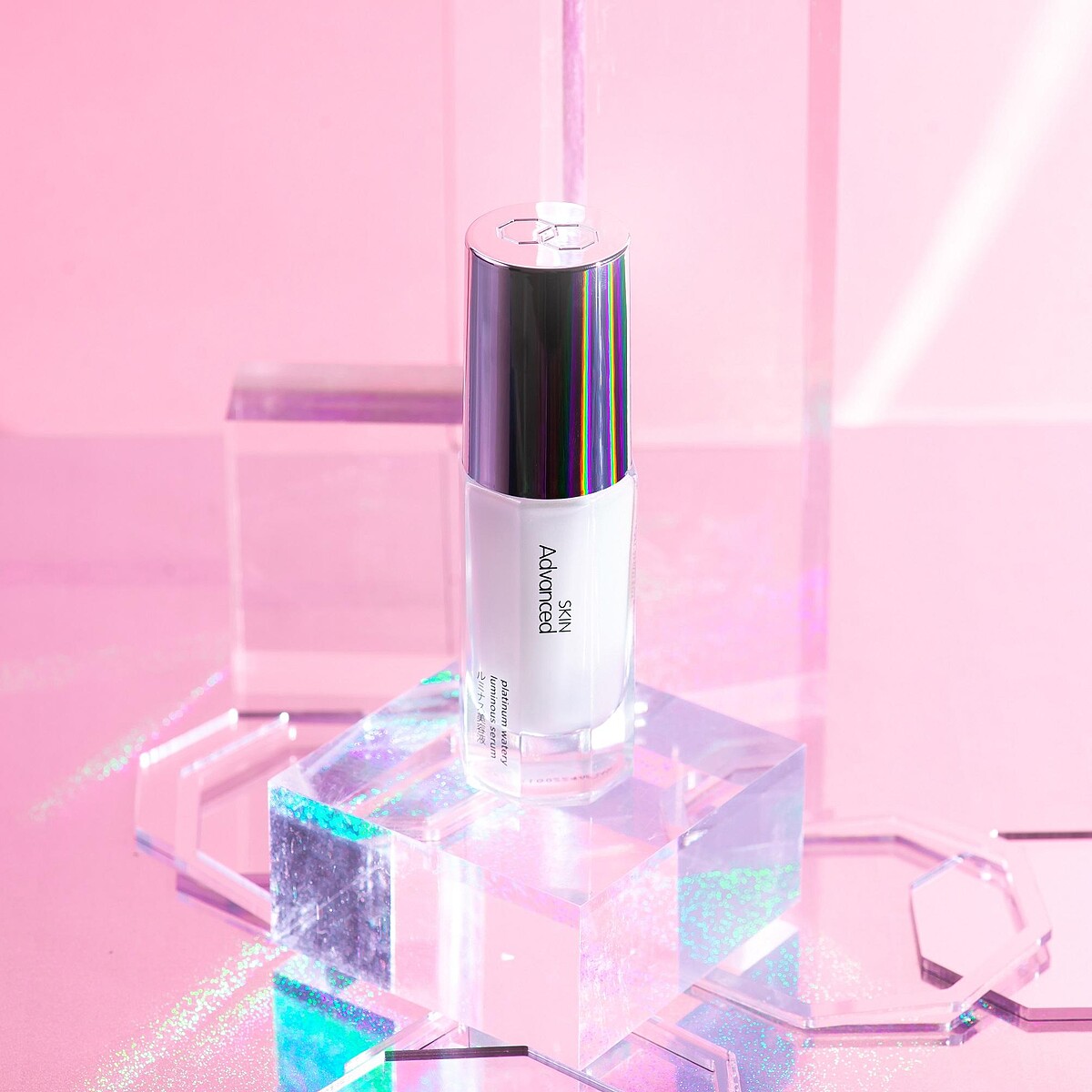 Step 3加強亮白:超熱賣的人氣品「白金水耀晶潤精華液」,號稱「小鑽瓶」!柔滑細緻的精華乳,質地輕盈吸收快,夏天使用也零負擔,添加藥蜀葵根、稻糠、光果甘草根、柑橘果皮等精華萃取,6種溫和提亮成分,即使曬後或敏弱肌也能安心用。