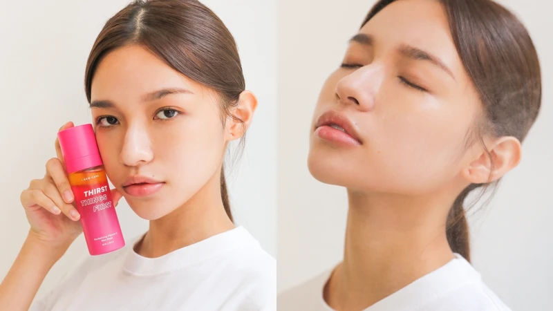 貼近人體組成的2:8油水雙層黃金比例,以橄欖油、荷荷巴油、蘋果籽油、沙棘果油萃取混合水溶液體,使用前要先搖一搖混合精華水與美容油兩種劑型,輕輕一噴在肌膚表層建立保水屏障,還能瞬間降溫解渴、水嫩保濕。