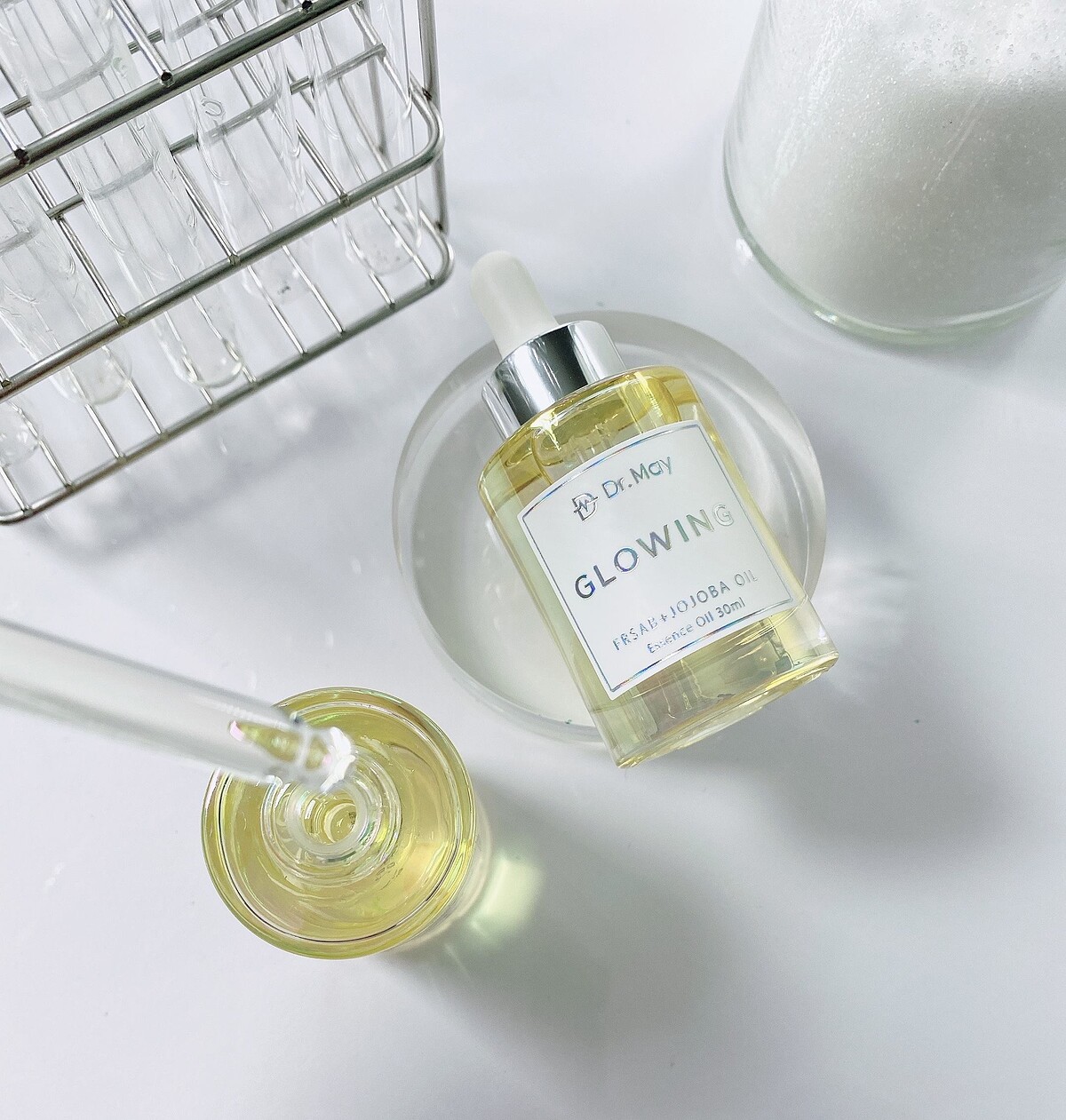 除了高達98%親膚精華,Dr. May美博士美白精萃還特別添加甜杏仁油、葡萄籽油、玫瑰果油,能舒緩敏感乾燥、清除自由基,同時給予深度保濕,由於小分子質地實在太好吸收,擦完後的清爽膚觸,讓M編直接忘記它是一瓶精華油!完美的配方比例、舒服的使用感受,加上每瓶產品都受過8000次的穩定測試,無論放置環境的溫度變化,都能讓活性成分達到最佳的保養效果,有了Dr. May美博士美白精萃,保養變得好簡單,根本不需要一堆瓶瓶罐罐,一次就能完成亮白、緊緻、抗老保養!