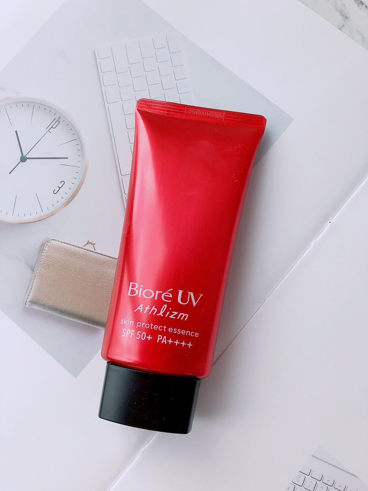 Bioré 獨特研發的耐久防禦層,簡單來說就是像多了一層肌膚般,輕薄且均勻的包覆全身,徹底防禦紫外線,保濕潤感防曬精華-滑順好塗抹,不黏膩,極效耐磨擦、耐汗水,並經過防水測試80分鐘都不掉,超威!
