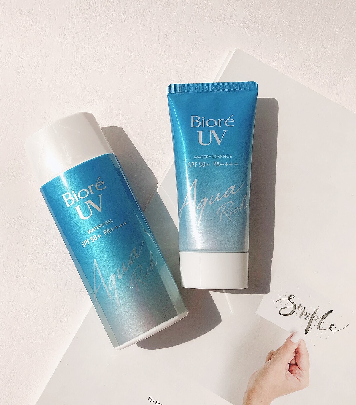 另外對於保濕重視的妳,Bioré也有超水感的藍色防曬系列:含水防曬保濕水凝乳和清透水凝露同樣高達SPF50+/PA++++,添加玻尿酸保濕成分、蜂王乳萃取、BG保濕成分讓肌膚到底,大家可能會覺得這麼水,防曬力是否會減低,不,Bioré厲害的地方在於以世界初*的超微米防禦配方*,均勻填補肌膚上的每個小隙縫,防曬力滿分。另外還飽含UV水凝體,鎖住水感防止肌膚乾燥,而且還可以避免很多人夏天用防曬會造成粉刺大暴走的困擾*,網路上可說是好評連連,例如:「質地是水感擦起來很輕透!」、「妝前用底妝變得很服貼,就算流汗用面紙擦都不會有粉在臉上!」是否很應該強推~M編沒在騙,今年夏天下半場快快用起來!