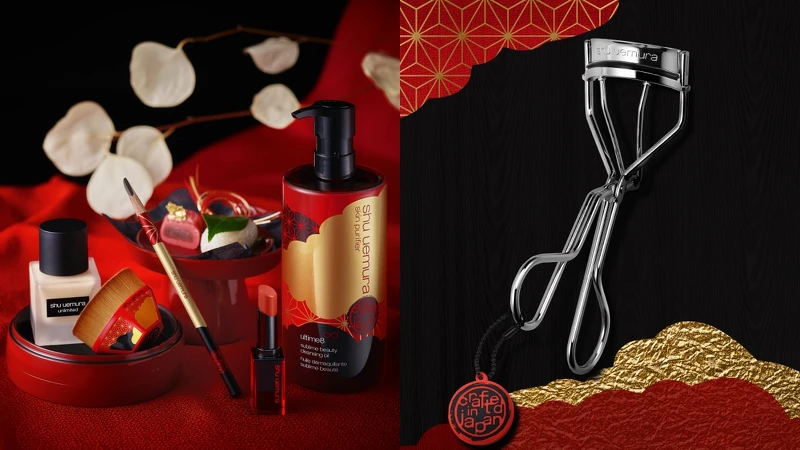 植村秀特別擷取日本文化中最重要的三大華美色彩-黑、紅、金,還有日本傳統紋樣中蘊含成長、吉祥、長壽等幸福含意的「麻葉紋」及「雲紋」,搭配運用日本傳統篆刻美學的「Crafted in Japan」獨特圓形 Logo,推出前所未有的植村秀日本工藝限定版包裝,品項包括:潔顏油、55 刷、武士刀眉筆、睫毛夾等四大明星商品,除了單品還有優惠組合,不過只限網路通路能買得到。