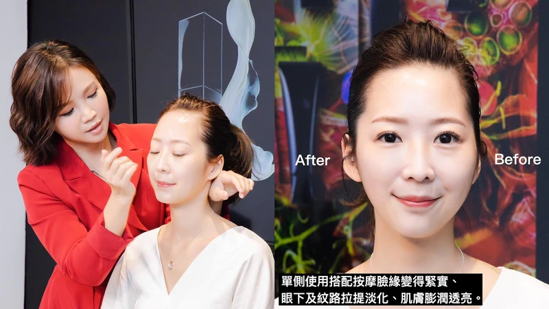 聽完柳燕老師說的那些老化現象自認還年輕的M編整個快嚇壞,而且最近看到臉書回顧,臉真的沒有以前緊實,肌膚也比較容易暗沉了,趕緊追問老師如果初次要入手「黑B.A」有沒有哪瓶最推啊?「當然是B.A化妝水!」柳燕老師一直以來都相當讚賞B.A驚人的滲透力,特別喜愛精華液般濃密質地的化妝水,極細分子讓所有抗老美容成分滲透肌底,單使用「B.A化妝水」一抹就能即刻感受肌膚飽滿水潤、豐盈充沛,瞬間由肌膚內部膨潤滋養,搭配按摩能拉提緊緻輪廓,最後別忘了搓熱雙手按壓吸收,保養完臉馬上爆光亮到不行!現場示範的模特兒使用半張臉後直接臉歪,肌膚的緊實度跟膨潤度都大大提升,最明顯的是眼下澎起來,像是眼袋淚溝的暗沉直接淡化了啊~想像名媛女星一樣私下妝都很淡,皮膚好到不行?想要減齡有感、逆轉老態膚況?柳燕老師笑說「黑B.A」絕對是首選!