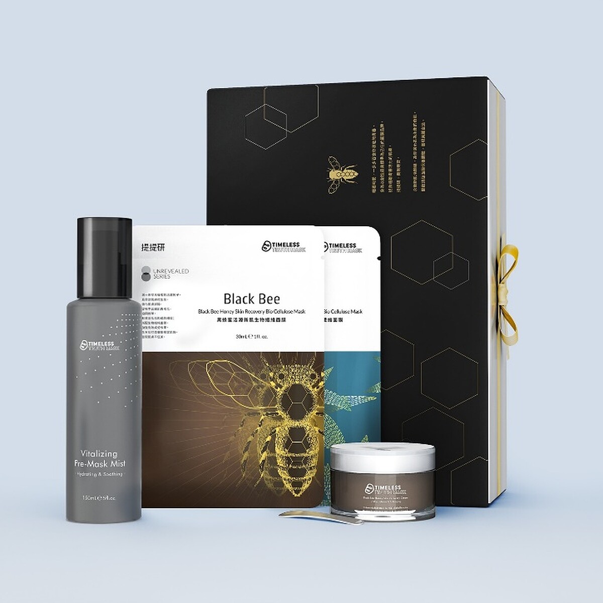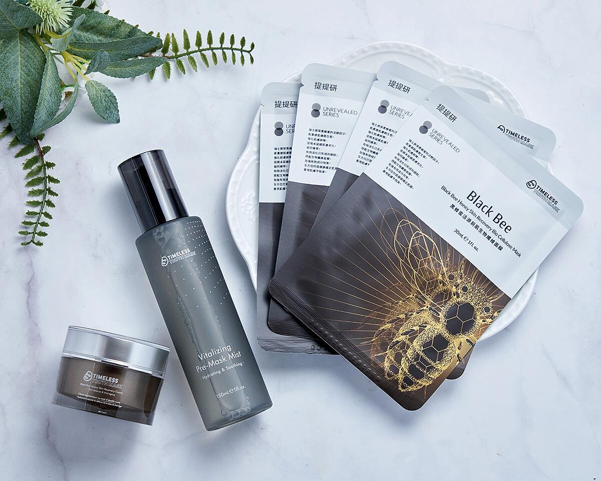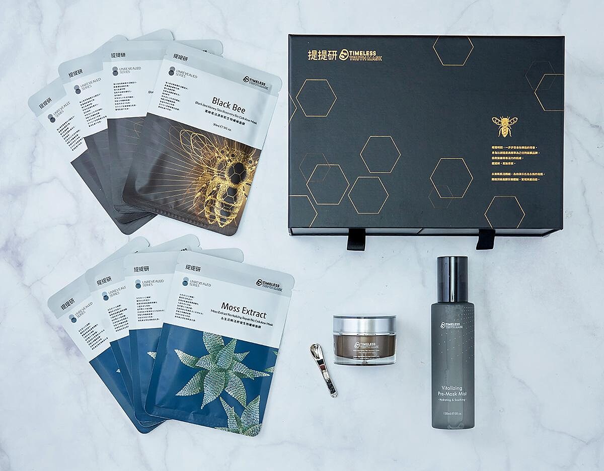 面膜舒醒前導噴霧1瓶、黑蜂蜜活源新肌生物纖維面膜4片、永生苔瞬活修復生物纖維面膜4片、黑蜂活源新肌乳霜1瓶,加贈永生苔精華液(3ml)+永生苔乳霜(2ml)1組,10/5 11:45準時開搶。