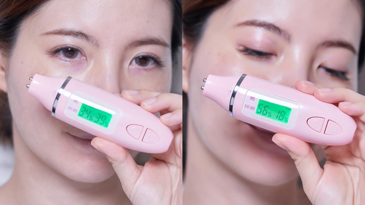 首先針對保水度的部分,最近天氣變化大,肌膚又乾又暗沉,油水不平衡,水分只剩34%。使用三步驟後,發現水分直線飆升至56%,增加22%有夠驚人,而且保濕效果維持到隔天洗臉都沒問題。