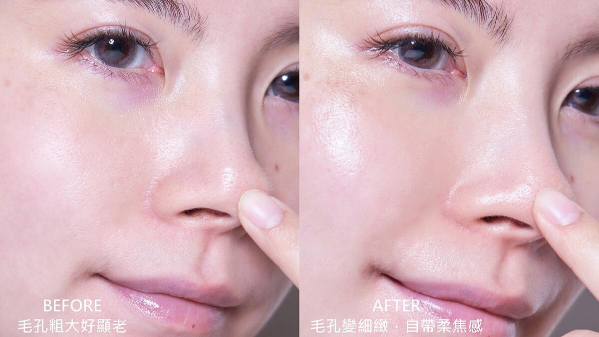 原本粗粗乾乾的肌膚,讓毛孔看起來好明顯超顯老。三步驟後,鼻翼毛孔細緻度大幅提升,彷彿開啟霧化美肌效果一樣,有夠威!!!