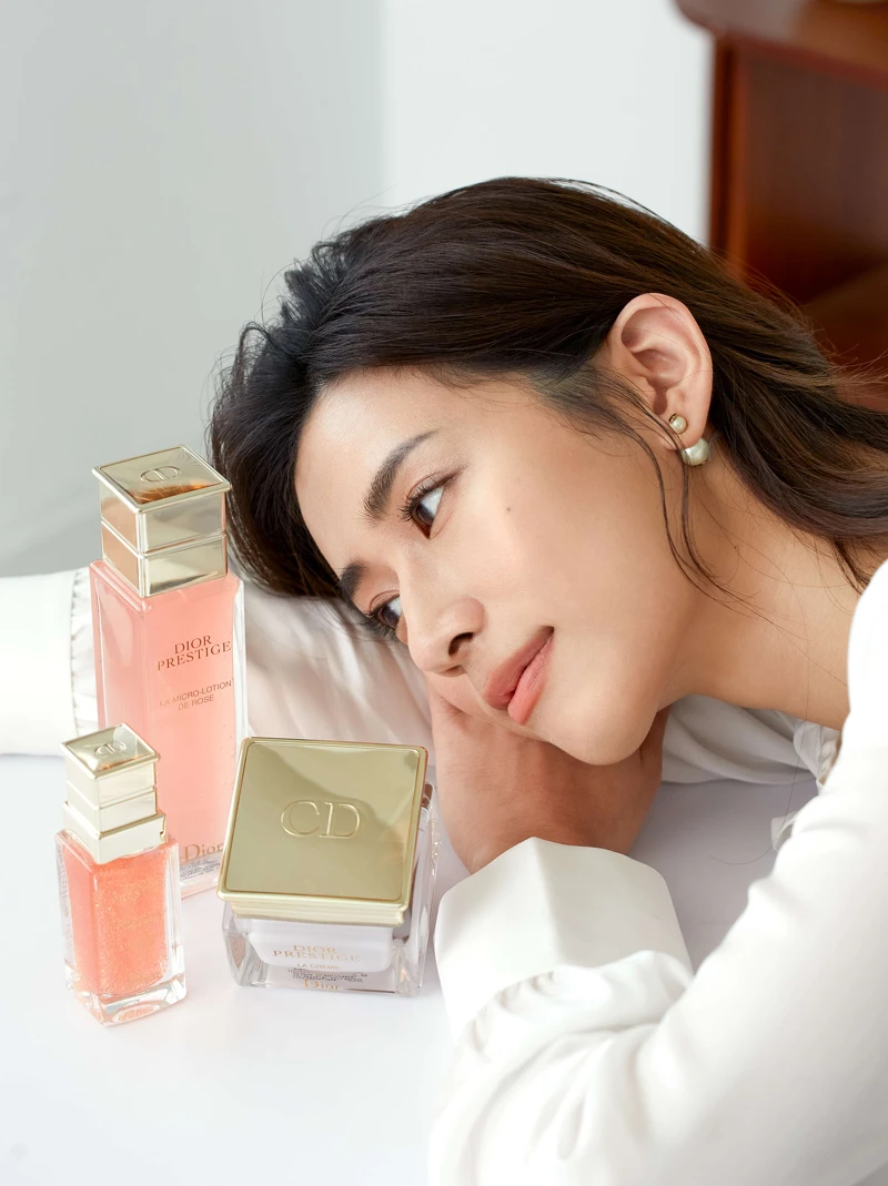 她還透露Dior迪奧頂級系列保養品儼然已是日常不可缺少的常備軍!每天晚上一定要用《DIOR迪奧精萃再生玫瑰微導精露》才安心,每次保養都是最高等級的奢華享受,隔日早晨的膚觸愈來愈柔嫩細緻,感受輪廓線條愈來愈緊緻!