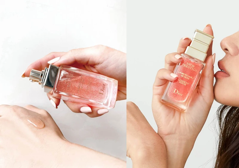 DIOR迪奧特別研發專利「雙重萃取技」及「酵素金萃技術」,以不影響分子品質的天然萃取方式,獲得珍稀岡維拉玫瑰花瓣與玫瑰花液的高效賦活能量,與22種微營養素相互加乘,注入全新《DIOR迪奧精萃再生玫瑰微導精露》中,全面升級保養修護力,受盡摧殘的疲累暗沉肌膚,也能瞬間被撫慰,同時透出健康透亮的光澤~難怪從去年就是穩坐頂級精華的銷售冠軍寶座!