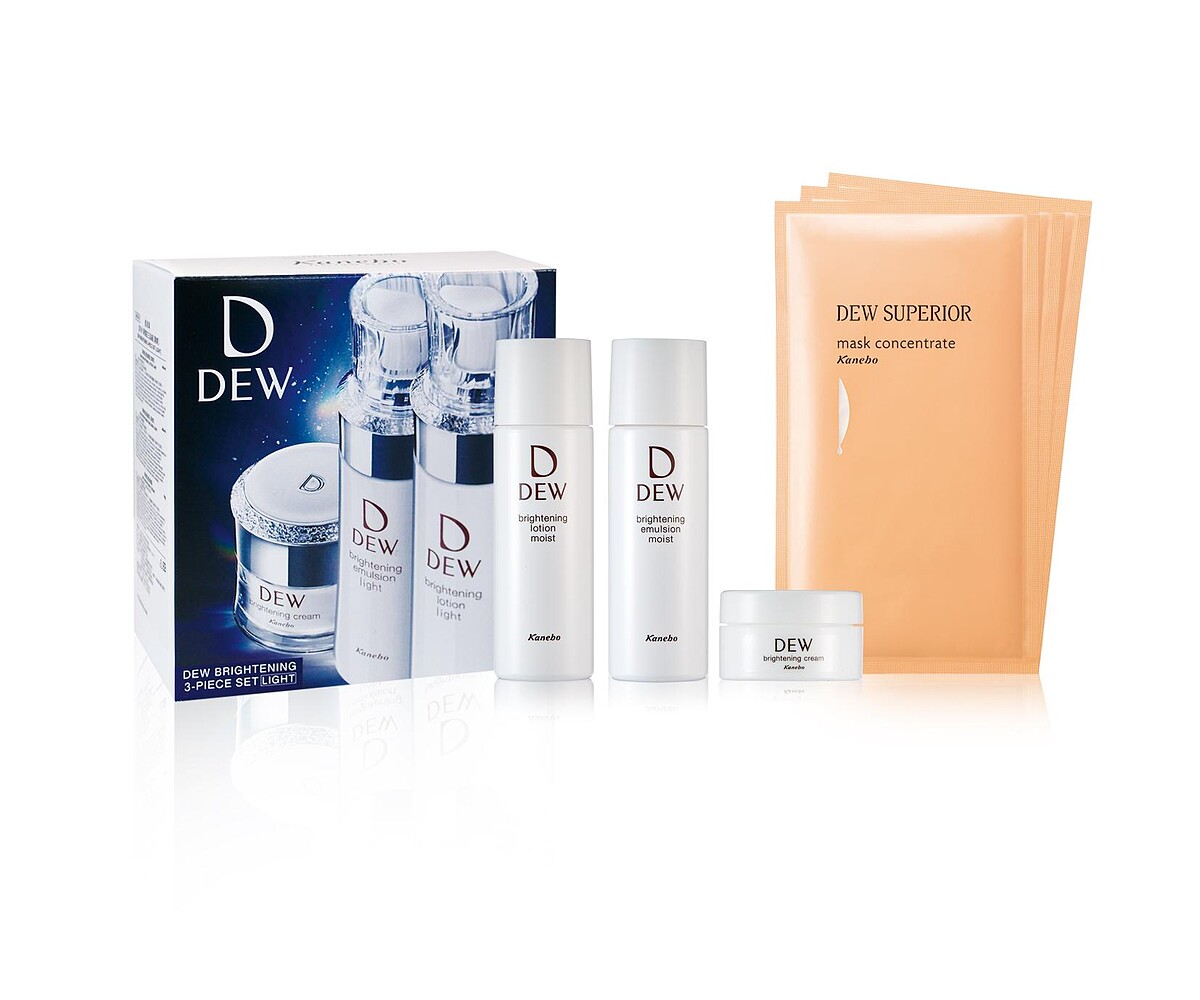 DEW淨潤白柔膚露40ml+DEW淨潤白柔膚乳40ml+DEW淨潤白柔膚霜9g+DEWS精純修護膜3入