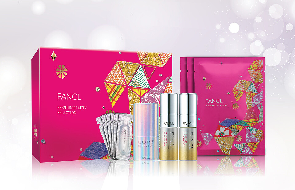 FANCL今年特別攜手百年千代紙品牌Isetatsu及人氣拼貼藝術團隊m&m&m′s, 打造結合西洋華麗風與和風美感的限定禮盒-逆齡芯生極緻限量套組。內容物鎖定抗齡保養需求,裡面有今年7月全新升級的逆齡賦活精萃,以及只在冬季限定禮盒出現的人氣商品-膠原賦活滋養面膜,甚至還有尚未在台灣販售的重量級新品-彈力芯生超能精萃,搶先讓大家用到!