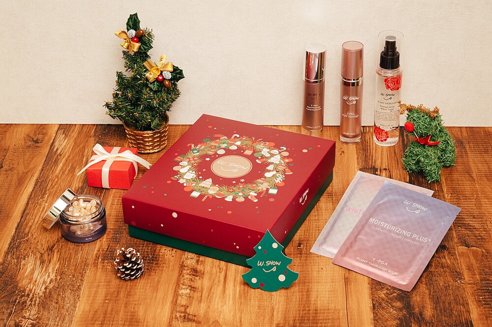 台灣保養品牌W.SHOW今年的聖誕節一共推出3款禮盒,分別依價位規劃成NT999、NT1,980、NT2,980,不過內容採隨機搭配,有機會獲得全效精華、全效面膜、全效精萃乳、舒緩保濕膠囊、全效玫瑰水、全效眼霜等品牌明星商品正貨,價值都較售價翻倍以上。連全效精華代言人隋棠都溫馨喊話:「是時候為喜愛的朋友準備一份貼心的聖誕禮物,尤其秋冬氣候較乾燥,送保濕絕對是最好的祝福。」