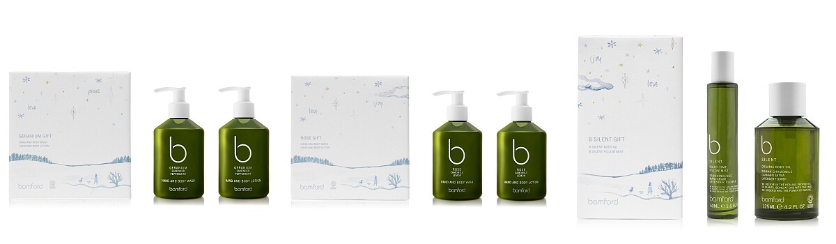 由英國貴族Carole Bamford女爵創立的bamford,今年聖誕找來英國插畫藝術家Susannah Garrod合作,將清幽美麗的冬日雪景展現於聖誕禮盒包裝,體現這恬靜且美好的時刻,並推出三款身體保養禮盒。「天竺葵禮盒」以埃及天竺葵的草本中心香調,增添薰衣草、東加豆,並點綴胡椒薄荷和藍膠尤佳利的氣味。「玫瑰禮盒」以千葉玫瑰花香氣息為中心,搭配依蘭依蘭與洋甘菊,以及果香四溢的檸檬、黑醋栗花苞,帶來安定幸福感。「甯靜禮盒」幫助營造出自然且舒適的環境氛圍,放鬆身心、舒緩焦慮壓力,滋養並療癒身心。