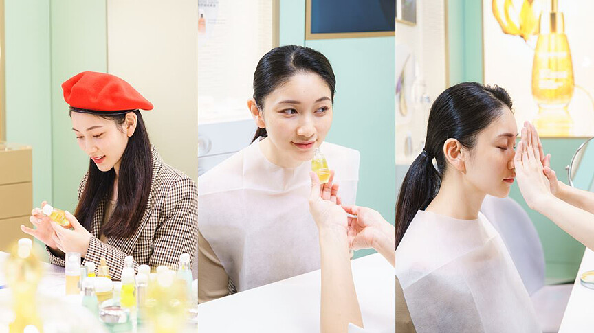 坐式體驗的護膚會,跟好姊妹兩人可並肩而坐享受法式保養,但別以妳們的療程會一模一樣,美容師會先讓根據妳的肌膚與需求客製專屬法式菜單,透過正統芳香精露嗅吸隨心找出當下妳最需要的能量,護膚饗宴的每一道法式佳餚都用最頂級的食材,並越到後面越佳驚喜的發現肌膚煥亮晶透!