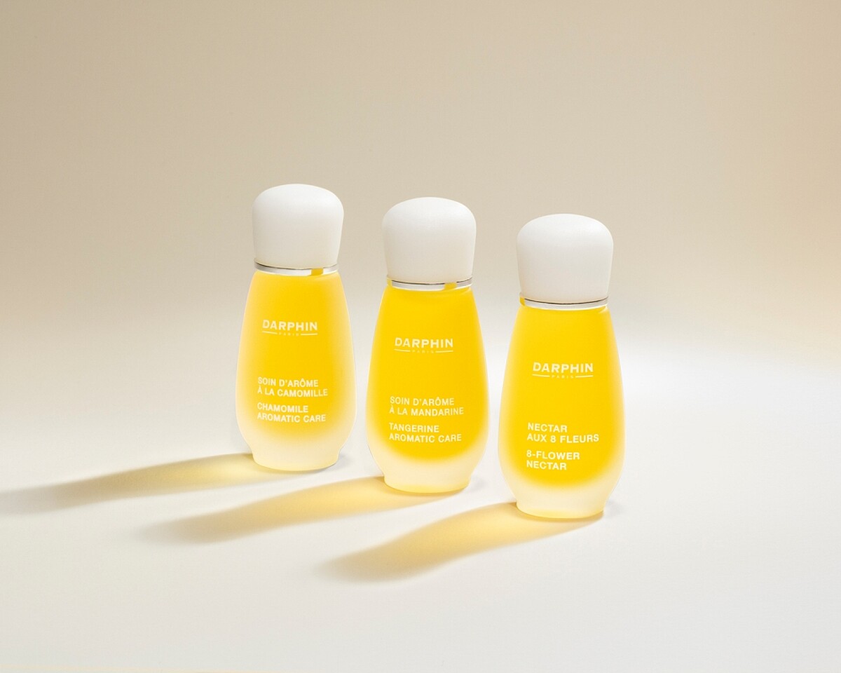 來自法國的芳香保養品牌Darphin朵法,最招牌的經典商品就是「芳香精露」,所謂的精露其實就是以植物油加上了複方精油,是可以當作美容油直接使用在臉部保養上。
