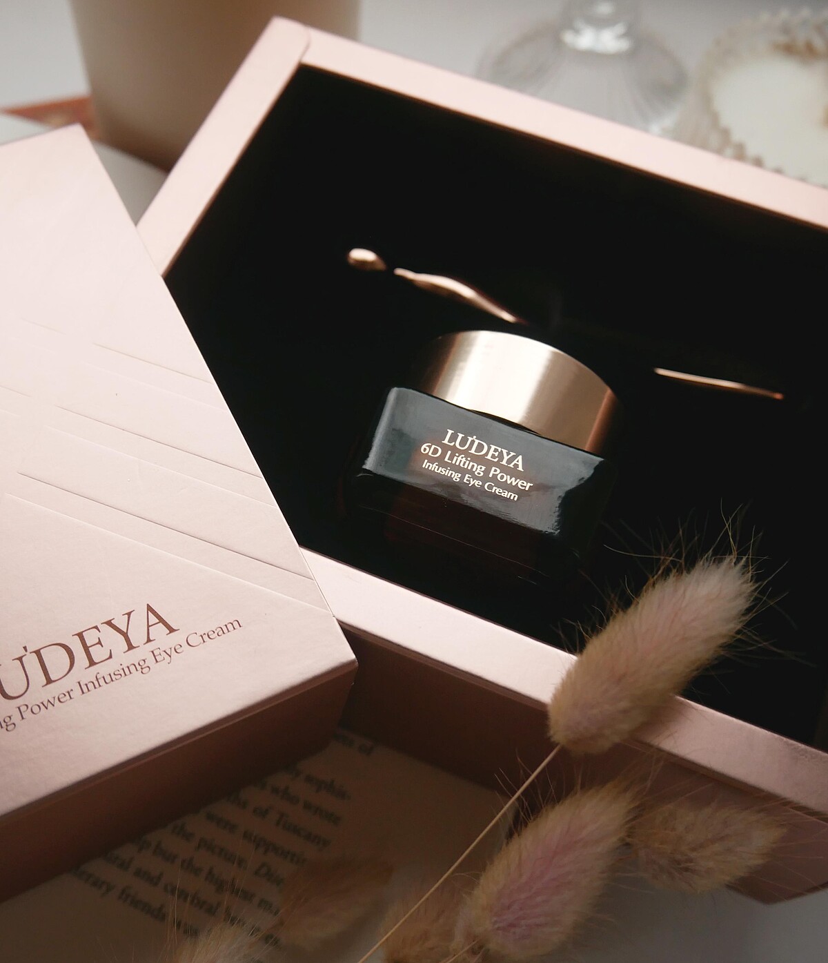 賈靜雯對感情忠誠,對保養品更死忠,多年不變愛用LUDEYA,因為一用就「很有感」,讓她自豪說:「時間從來不是問題!」最近的新歡就是LUDEYA新上市的超緊臻琥珀眼霜,精粹凝霜質地,用起來清爽吸收不黏膩,重點是使用獨家微臻科技,擁有一億七千萬微臻,能將6倍法國琥珀萃取的濃縮精華密集且深入導入肌膚,讓保養變得更快速高效!