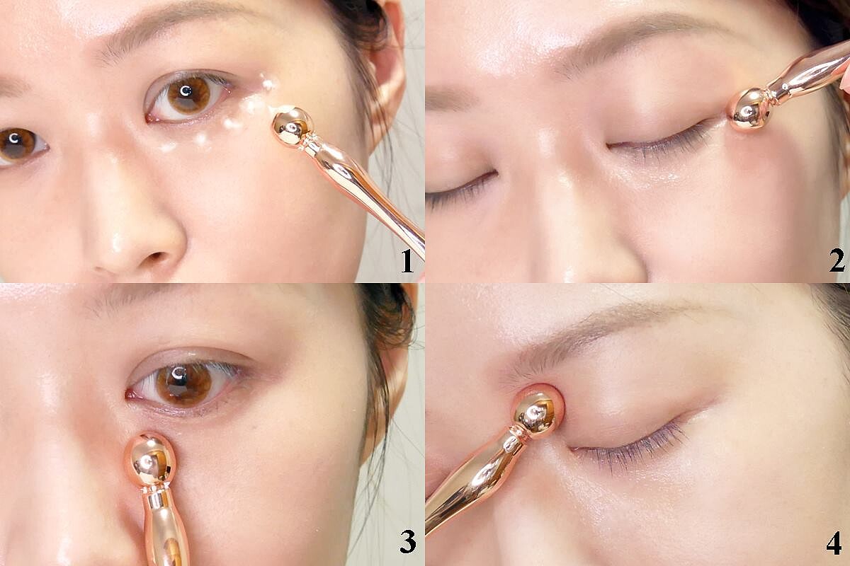 STEP 4:用圓頭點壓眼頭,幫助消除眼部疲勞。