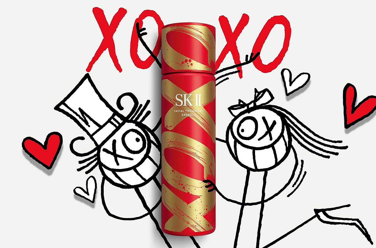 青春露XOXO新年限量版更與藝術家André Saraiva 合作,由筆下塗鴉人物「Mr. & Mrs. A」登上SK-II專櫃,表現對青春露與Pitera™️的喜愛。