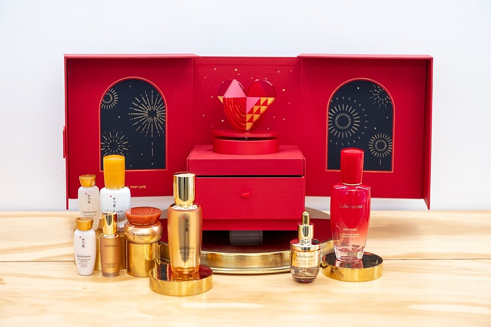 除了限量版包裝,雪花秀還推出全球限量音樂禮盒,將此次潤燥養膚精華2021 LOVE限定版的祝福概念與音樂盒結合,傳遞更多的愛與快樂氛圍。雪花秀音樂禮盒全台限量27組(內含潤燥養膚精華2021年節限定版120mL正貨、滋陰生人蔘緊緻煥顏微導精露50ml正貨、滋陰生人蔘縮時修護安瓶20ml正貨、滋陰生人蔘緊緻煥顏微導精露8ml、滋陰生人蔘修護霜EX 15ml滋潤型、潤燥養膚精華30ml、滋陰生人蔘煥顏露30ml、滋陰生人蔘活膚乳30ml),並採限定櫃點販售(SOGO台北忠孝館、新光三越 信義A8、新光三越 台北南西一館、新光三越 台中中港店、漢神巨蛋購物廣場)。