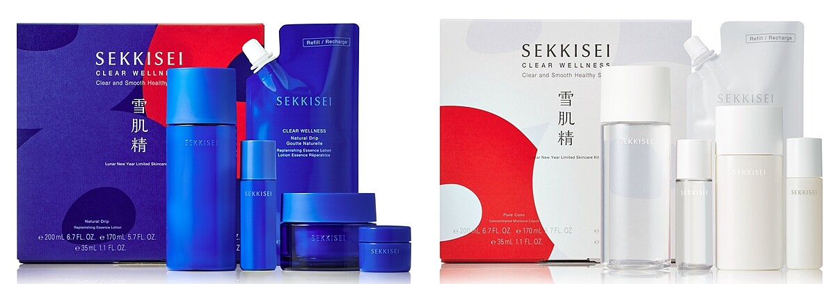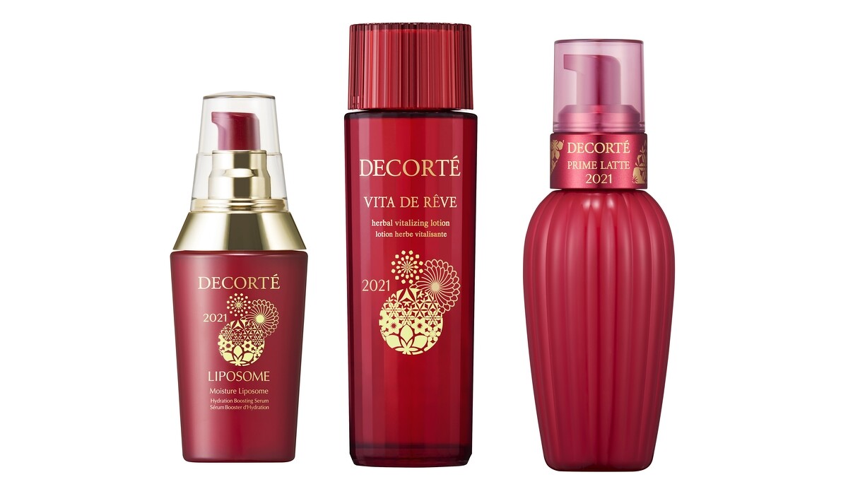 以慶祝新年花火為意象,嬌俏的櫻桃紅瓶身設計,點綴上璀璨的金色線條,襯托出熱鬧歡愉的年節氣息。除了人氣商品保濕美容液之外,亞洲熱銷雙星紫蘇水和酪梨乳也都換上新包裝。