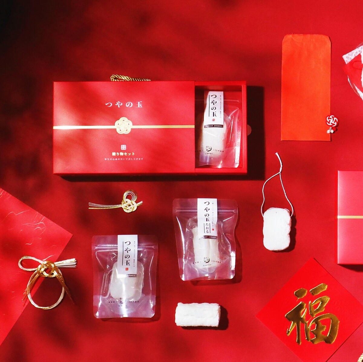 首度在台發售之「畑中義和商店」2021新年禮盒,盒內不僅含有兩顆年年售罄的水凝光洗顏蒟蒻海綿,同時更附上日本限量、台灣從未公開販售的水凝光嫩膚蒟蒻巾