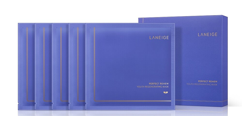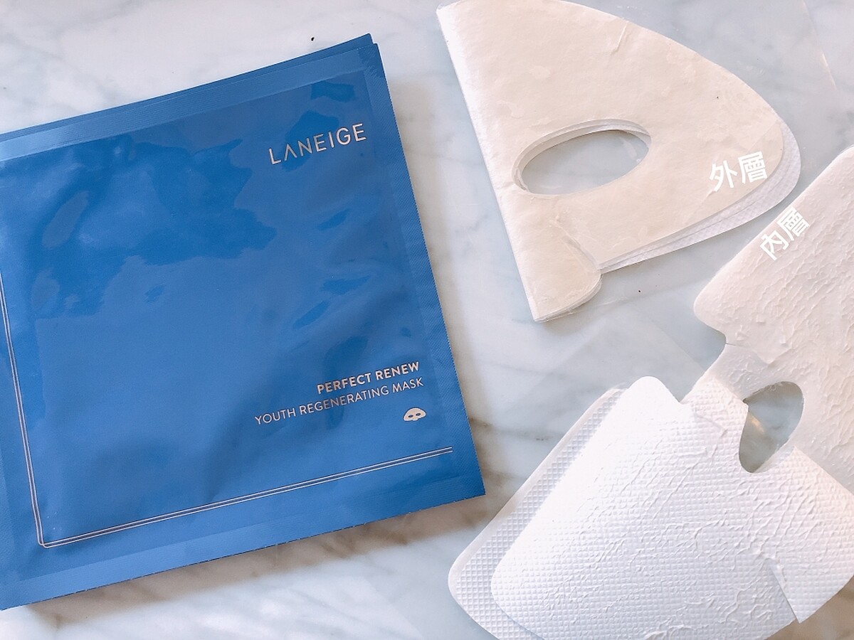 LANEIGE蘭芝2021年3月全新推出「完美新生氣墊緊緻面膜」,屬於完美新生AD系列,原本就是主打專為解決女性初老問題。光一片面膜就含有超過三分之一瓶的完美新生賦活乳霜,成分包含自薑花根萃取出的肌膚修護能量精萃–醣(Glyco)複合物、三胜肽等等,能深度為肌膚充飽電力,非常適合重要場合前一晚使用。