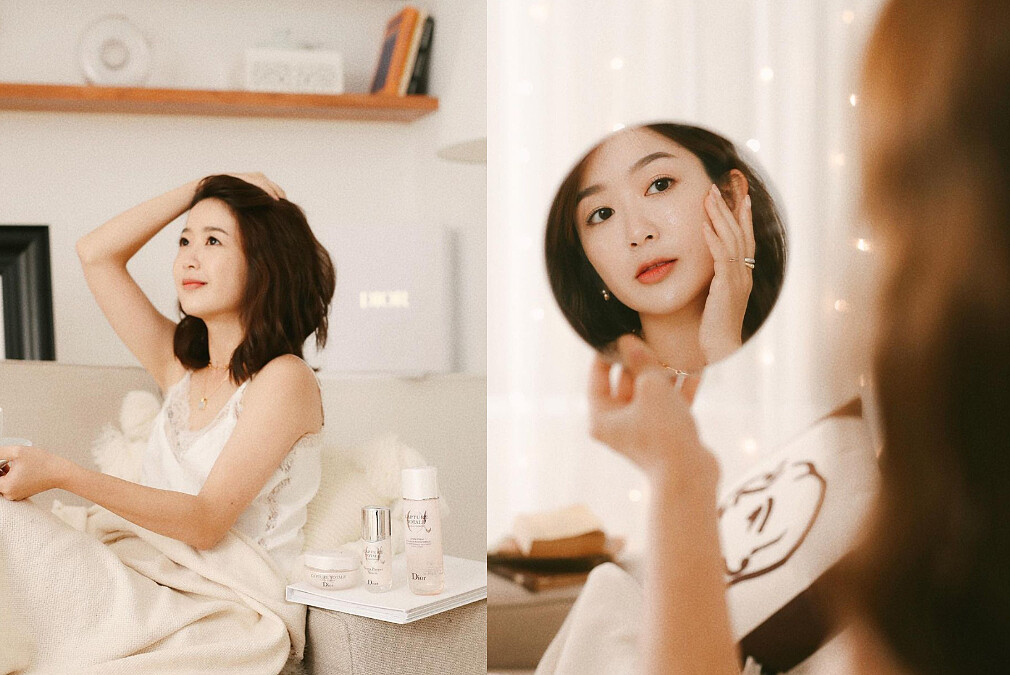 有迪奧實驗室研究背書,加上天然花植萃取配方,讓妍安對這系列信賴有加。特別是迪奧逆時能量精華:「擦在臉上快速吸收,修護感受明顯、保濕力度非常夠!再搭配簡單拉提按摩,使肌膚真的變的柔嫩細滑。」尤其現在冬季氣溫變化大,後續再搭配特潤霜,為肌膚補足防禦、修護及保濕力。「一週明顯覺得肌膚穩定、細紋變淡,煩人小顆粒也不見了,仙女般的嫩亮膚質就靠它們!」