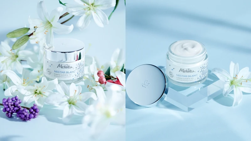 Melvita蜜葳特百合花姸亮白系列汲取具卓越煥白祛黑作用的法國有機白百合與海百合雙重淨白成份,2021年推出全新升級的-百合花姸亮白4D凝霜。除了經典雙百合成份,全新加入淨白透亮成分「有機日本紫珠萃取精華」,能有效對抗春天紫外線所帶來的色素沉澱與膠原蛋白流失、老化鬆弛等問題。還有有機天然冬青濃縮精華,能溫和代謝老廢角質,使膚觸加倍細緻柔嫩,由內向外透出明亮白皙光采。