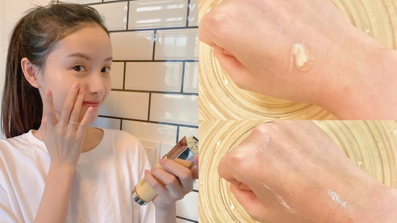 Step1 雙精瓶擠在手掌心後溫熱,以輕按壓的方式塗抹於全臉,因為是凝露和乳液兩種質地,非常輕薄不厚重,能溫和的代謝毛孔。