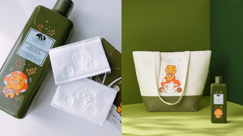 萊恩控請注意!品木宣言母親節期間推出Origins X KAKAO FRIENDS限定包裝「靈芝水」及一系列周邊商品,戴著蘑菇帽的萊恩靈芝水超級療癒。周邊商品則有連帽設計萊恩懶人毯、萊恩帆布袋,而且只送不賣。
