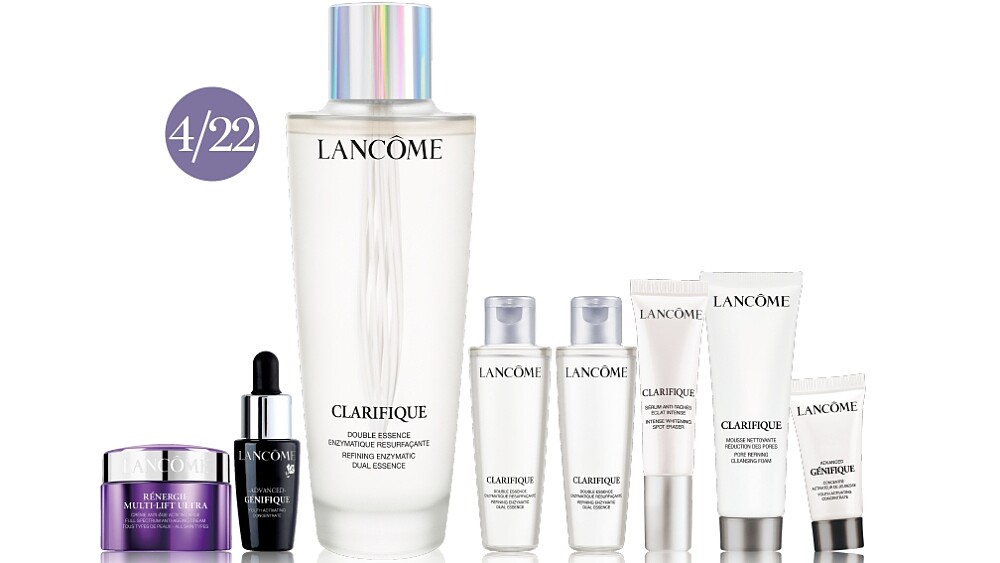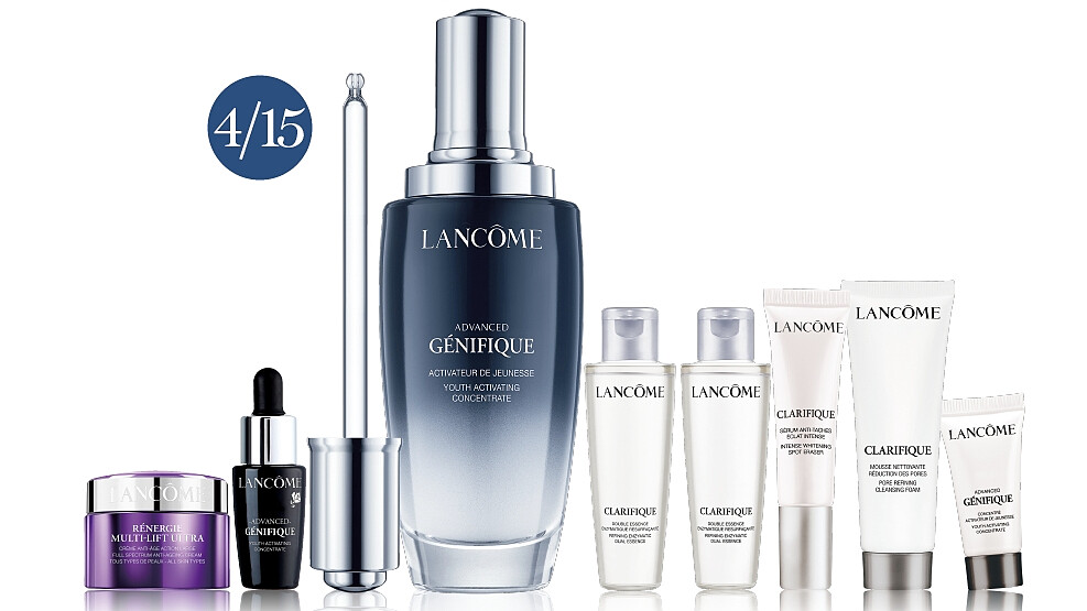 內容:超極光活粹晶露250ml大容量、超未來肌因賦活露7ml、超極光活粹晶露50ml、超緊顏白金淡斑霜15ml。可再獲得第一檻滿額贈「超極光明星旅行組(價值NT3,284)」。