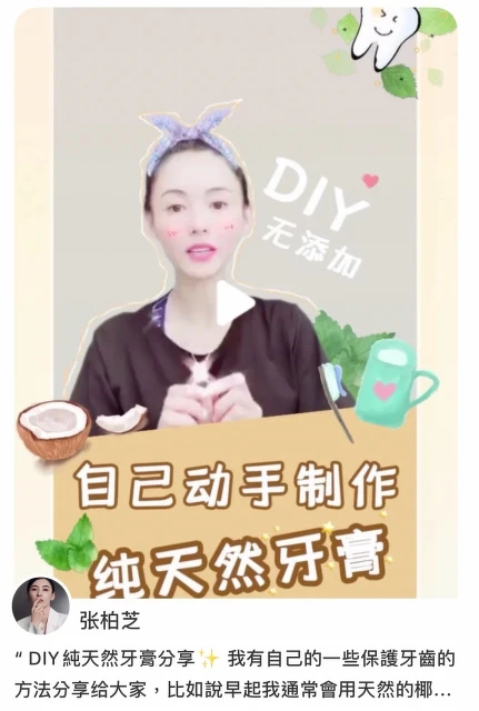 張柏芝分享過自己保護牙齒的方法,比如說早上起來時,她會用椰子油含在嘴裡10~15分鐘再吐掉,這個油漱法有助維持口腔健康。她也會利用100%純天然椰子油、天然薄荷精油(一定要可食用級別的)、蘇打粉自己DIY天然牙膏。