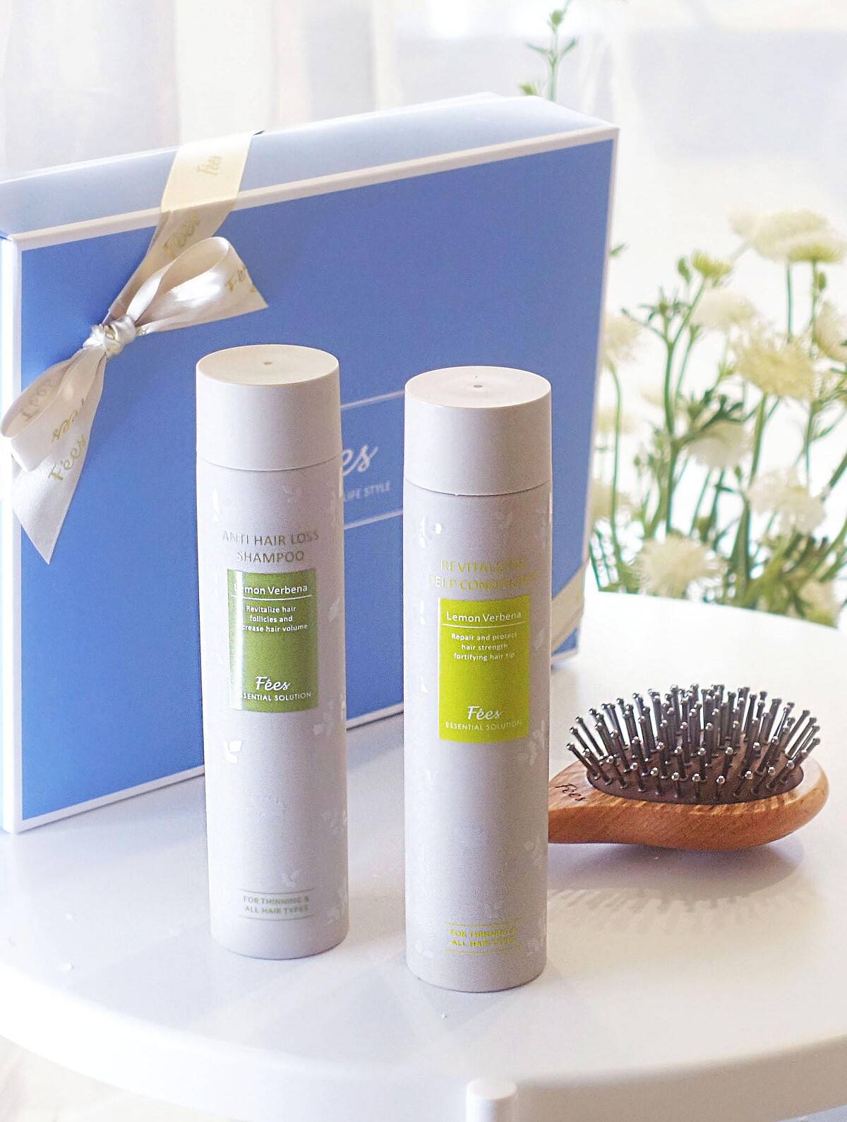 【Fées法緻雪瀑秀髮禮讚】草本養髮髮浴露250ml+草本養髮賦活乳250ml+鈦好頭皮按摩梳。NT2380